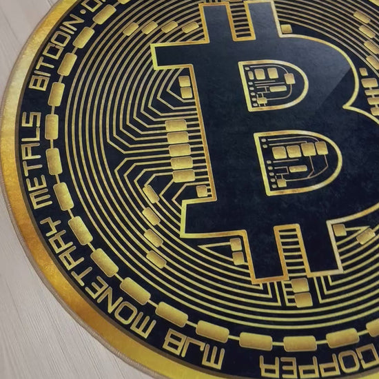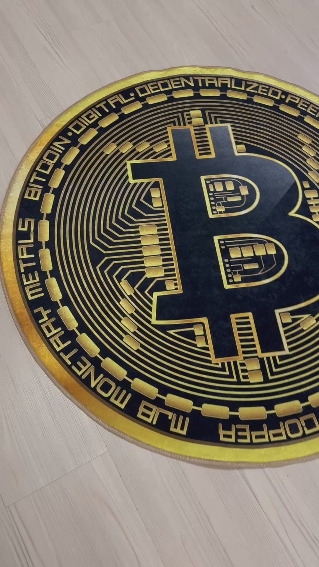 Bitcoin para şeklinde dijital baskı halı, teknolojiyi, yeniliği ve yatırım kültürünü ev dekorasyonuna taşıyan yaratıcı bir üründür. Bitcoin temalı tasarımı ile genç odaları, ofisler, kripto para meraklılarının alanları veya modern yaşam alanlarında fark yaratır.