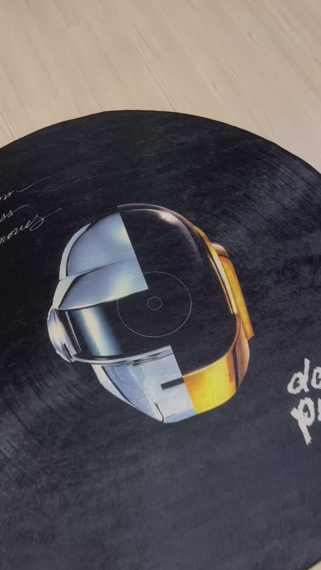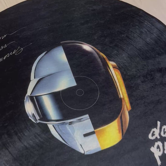 Daft Punk Logolu Gerçek Plak Şeklinde Dijital Baskı Halı – Kaymaz Tabanlı, Süngerli Yüzeyli