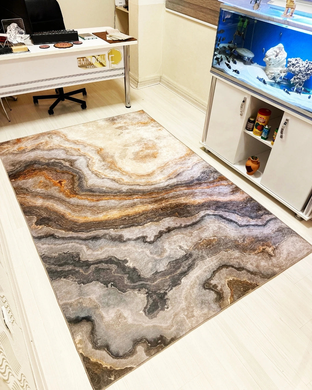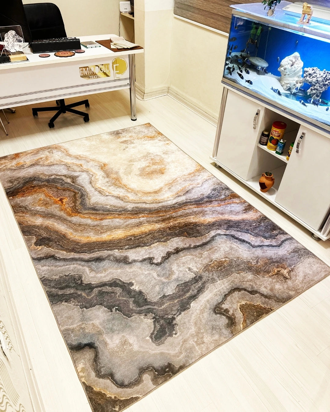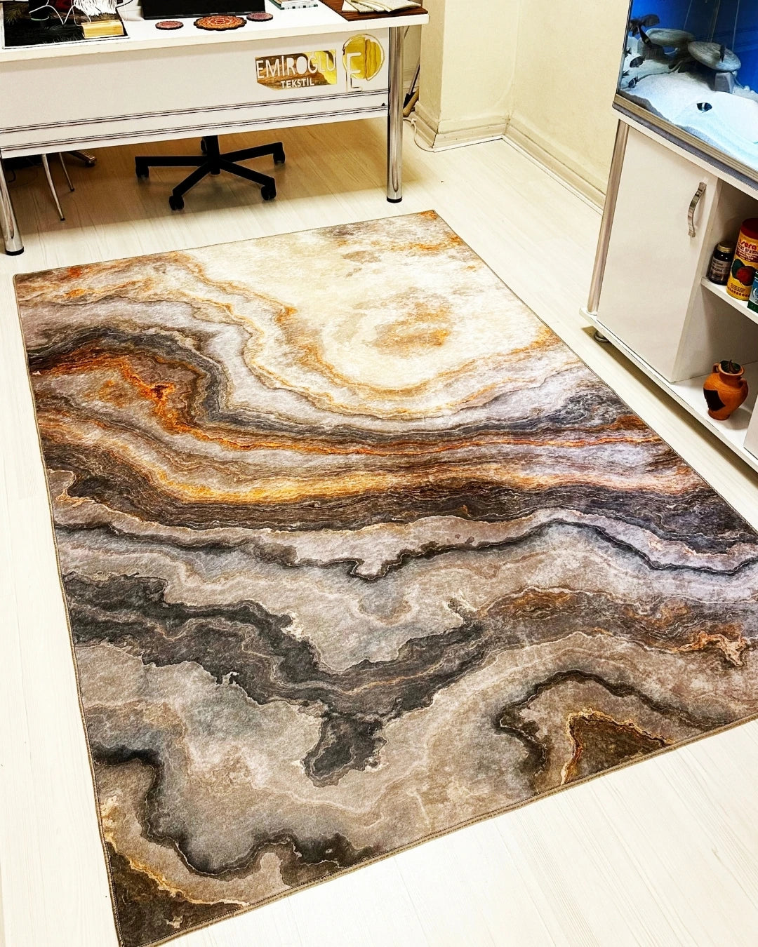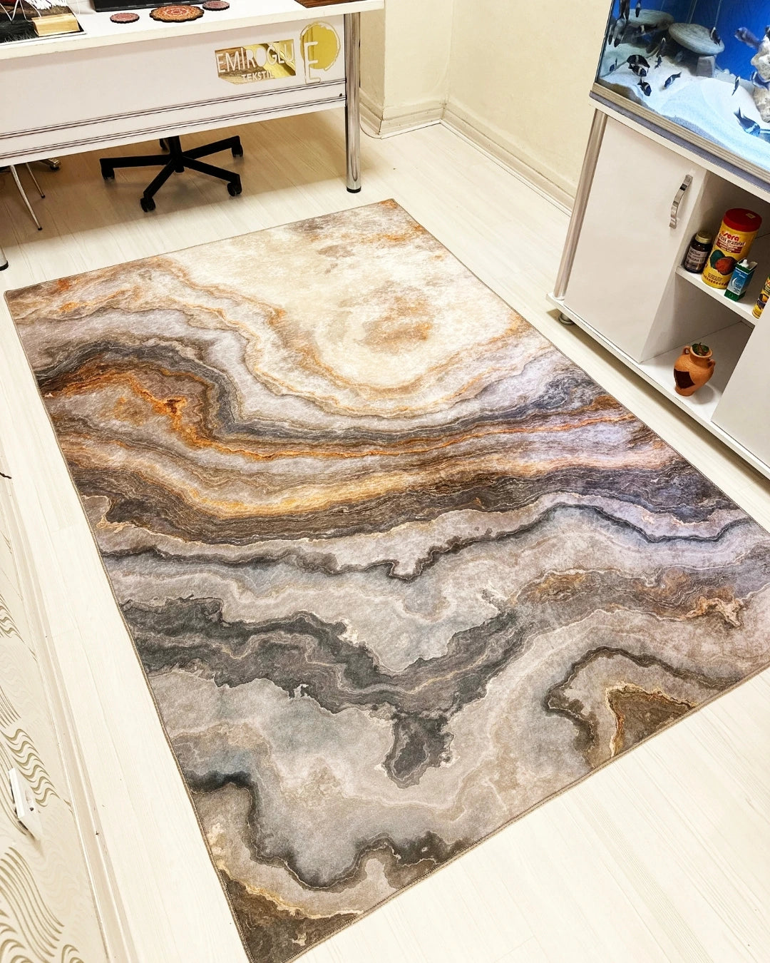 Sünger dolgulu özel yüzeyi, yumuşak dokusuyla konfor sunarken, kaymaz tabanı sayesinde zeminle güçlü tutuş sağlar. Halı, dijital baskı teknolojisiyle üretilmiştir; böylece renkler canlı kalır, desenler netliğini uzun süre korur.